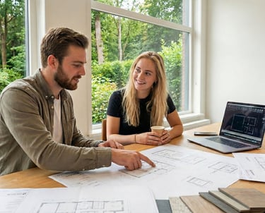Jij bepaalt hoe je huisje eruitziet en voelt. Wij vertalen jouw ideeën naar een ontwerp op maat. Geen kant-en-klare cataloguswoning, maar een thuis dat precies bij jou past.